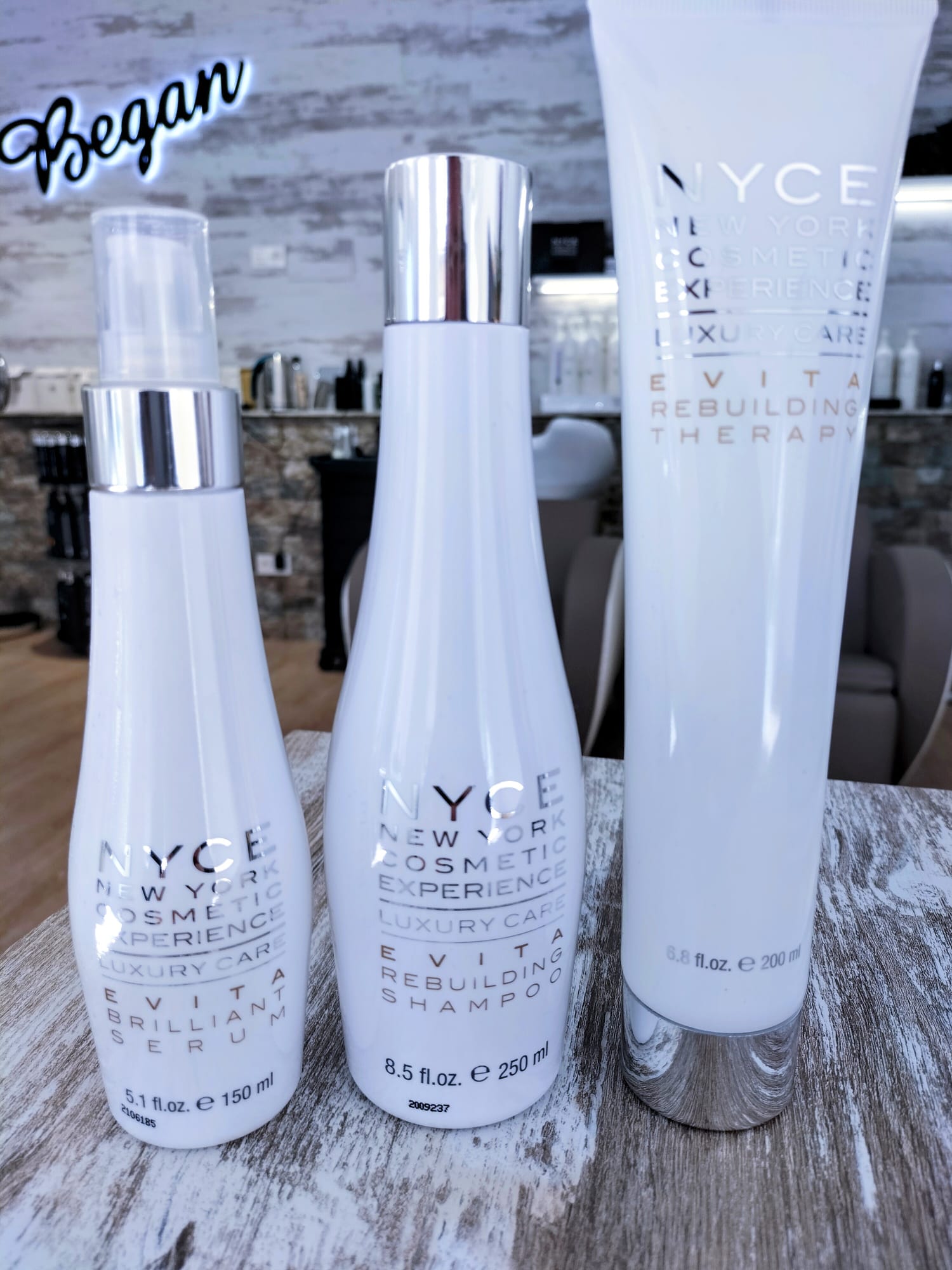 Todos los productos que empleamos en BEGAN son de origen orgánico y natural. Aportan el mejor cuidado a tu cabello, respetándolo y mimándolo. Además, también podrás adquirir productos de peluquería profesional de diferentes marcas, como NYCE Cosmetics: lujo, elegancia y exclusividad en el cuidado del cabello, al alcance de tu mano.